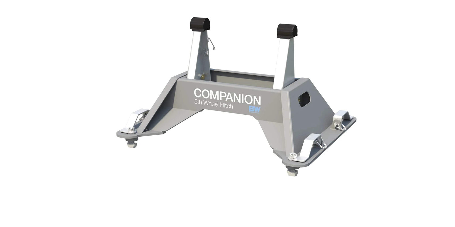 The Companion 5th Wheel Hitch was designed to address the issue of sloppiness in hitches. The result is a quiet, cushioned ride that is free of jerking. And it's easily removable with its single-point-attachment.